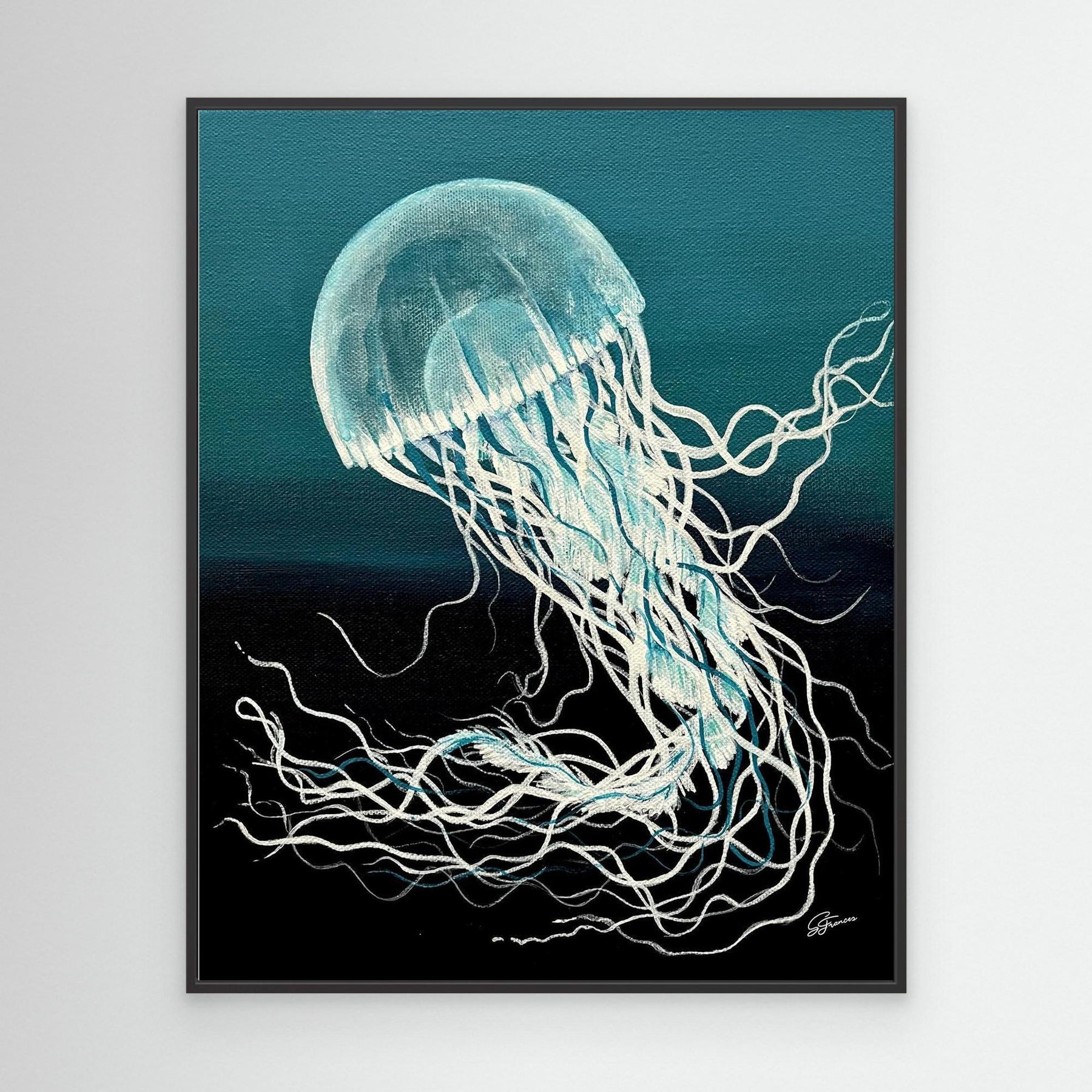 Part of the Emerald Tide Collection, Emerald Flow pairs perfectly with its sister jellyfish artworks — telling a story of colour, motion, and the deep, healing quiet of the sea.
